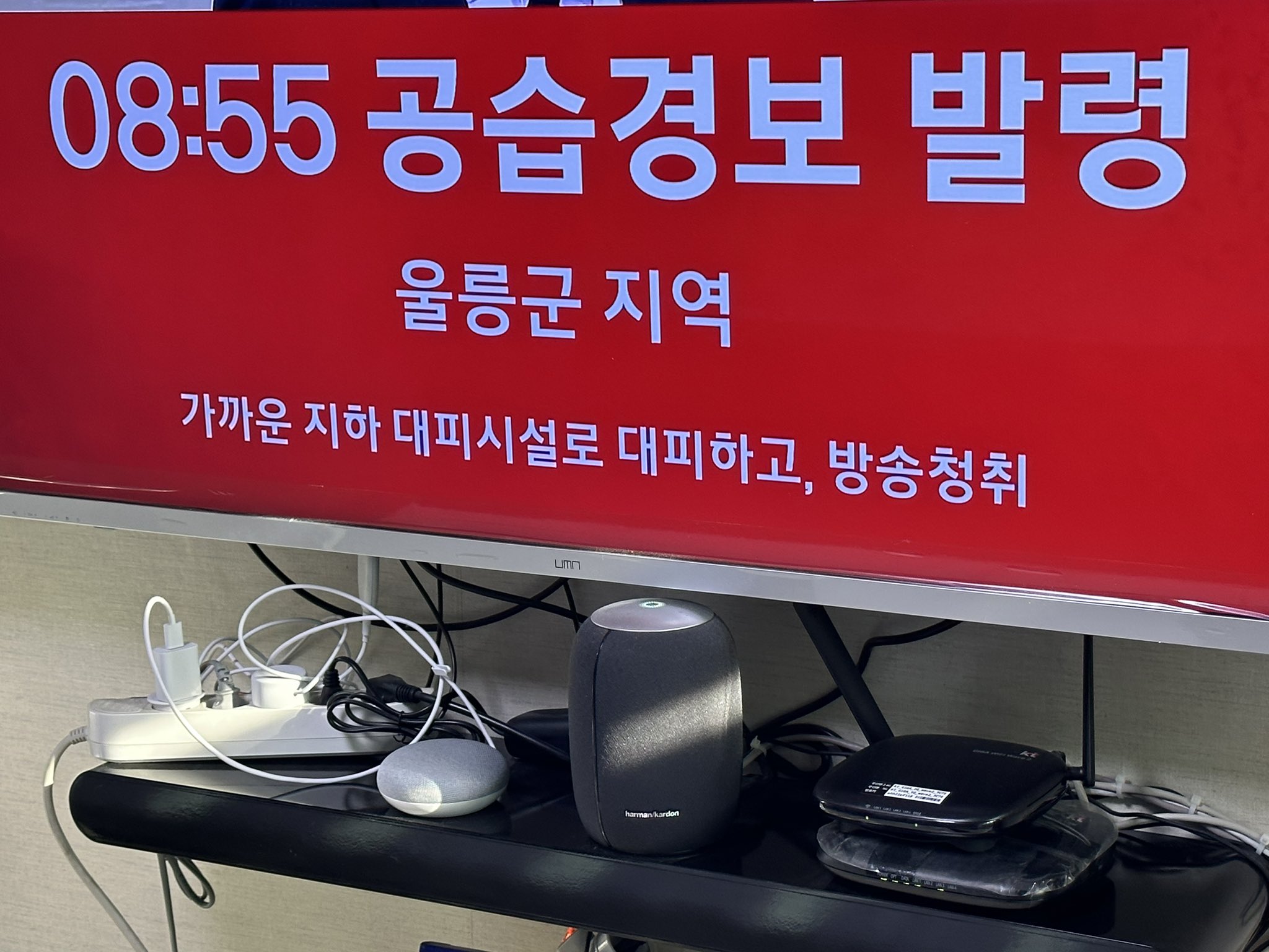 울릉군에 따르면 이날 울릉군 전역에는 오전 8시 55분부터 약 3분간 공습경보 사이렌이 울렸다.